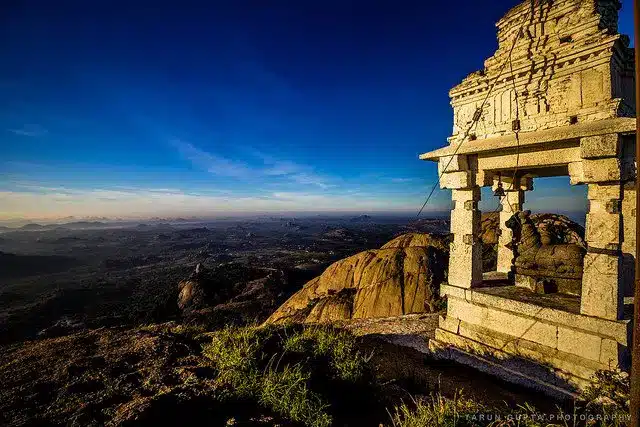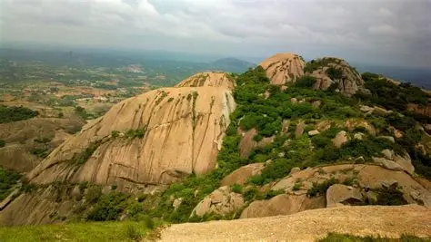 Savanadurga is a huge granite hill with two peaks and two temples at the base. It offers trekking, rock climbing, biking and hiking trails, as well as scenic views of Bengaluru city and forests.